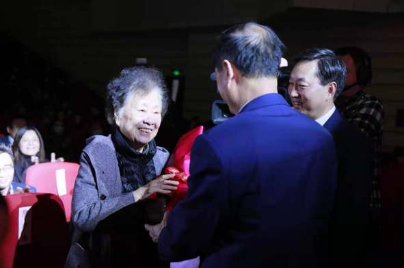 縱然雁歸去,屋巢依房棲。千千萬萬一中學(xué)子從這里走出去,但一中依然有無數(shù)默默奉獻(xiàn)、勤耕不輟的“守房人”。重慶一中校長唐宏宇向與學(xué)校同歲的90歲老教師深情鞠躬,并獻(xiàn)上獻(xiàn)花。