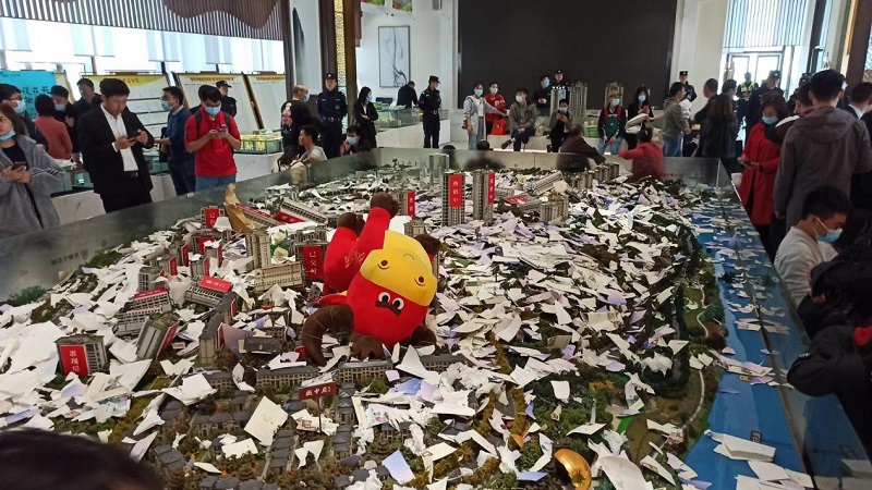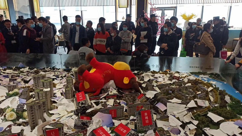 央廣網(wǎng)重慶4月19日消息 4月17日下午,上百位業(yè)主齊聚在位于重慶悅來的北京城建龍樾生態(tài)城。隨后,該項(xiàng)目的沙盤被人為砸毀。
