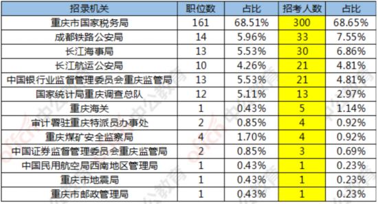 2018國家公務(wù)員考試重慶各單位招錄情況