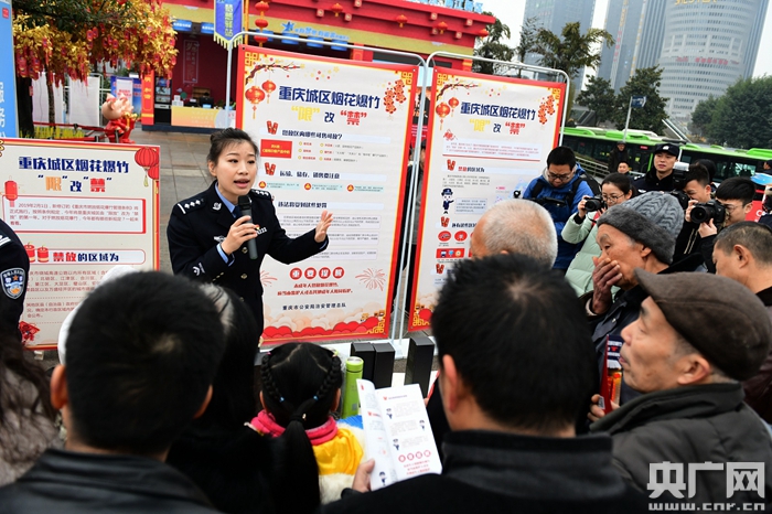 “禁止燃放煙花爆竹,共創(chuàng)文明綠色家園!1日開(kāi)始,主城區(qū)繞城高速以內(nèi)區(qū)域以及北碚區(qū)、渝西片區(qū)城市建成區(qū)全年禁止燃放煙花爆竹。違法燃放將受處罰!”活動(dòng)現(xiàn)場(chǎng),治安總隊(duì)民警通過(guò)懸掛宣傳禁放條幅、向過(guò)往旅客尤其是外地返渝群眾分發(fā)《重慶市燃放煙花爆竹管理?xiàng)l例》和《重慶市人民政府關(guān)于加強(qiáng)燃放煙花爆竹管理的通告》、贈(zèng)送宣傳手冊(cè)和小禮品等方式,宣傳禁止燃放煙花爆竹相關(guān)知識(shí),讓大家意識(shí)到燃放煙花爆竹的危害,引導(dǎo)大家提高守法自覺(jué)性,文明過(guò)年、平安過(guò)節(jié)。同時(shí),民警還耐心向大家講解警方服務(wù)學(xué)校29條、社會(huì)面大巡防等相關(guān)措施以及戶政方面的各項(xiàng)便民利民新舉措。