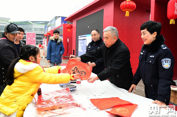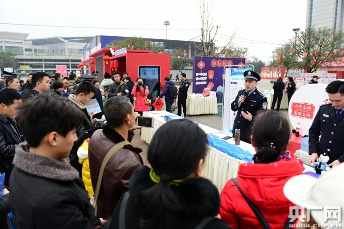 央廣網(wǎng)重慶1月31日消息(記者陳鵬)還有幾天就要過(guò)年了,為給旅客朋友們保駕護(hù)航,30日上午,重慶火車北站南廣場(chǎng)“夢(mèng)想驛站”攜重慶警方,結(jié)合春運(yùn)特點(diǎn),通過(guò)小知識(shí)有獎(jiǎng)問(wèn)答、現(xiàn)場(chǎng)視頻宣講、發(fā)放宣傳資料等方式,開(kāi)展煙花爆竹禁放宣傳,為往來(lái)旅客送上防范電信詐騙、非法集資、毒品犯罪、盜、扒、騙以及交通安全防范常識(shí)。同時(shí),公安文聯(lián)的藝術(shù)家們還在現(xiàn)場(chǎng)作畫、寫春聯(lián)和“!弊,為大家送上新春祝福。