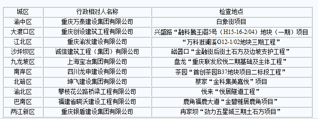 2月19日,市城市管理局發(fā)布了1月主城“揚(yáng)塵整治”巡查通報(bào)情況。上月,渝北區(qū)攀枝花公路橋梁工程有限公司悅來“悅居隧道工程”等10個(gè)工地因?yàn)閾P(yáng)塵控制不力受到通報(bào)批評(píng)(見圖表)。