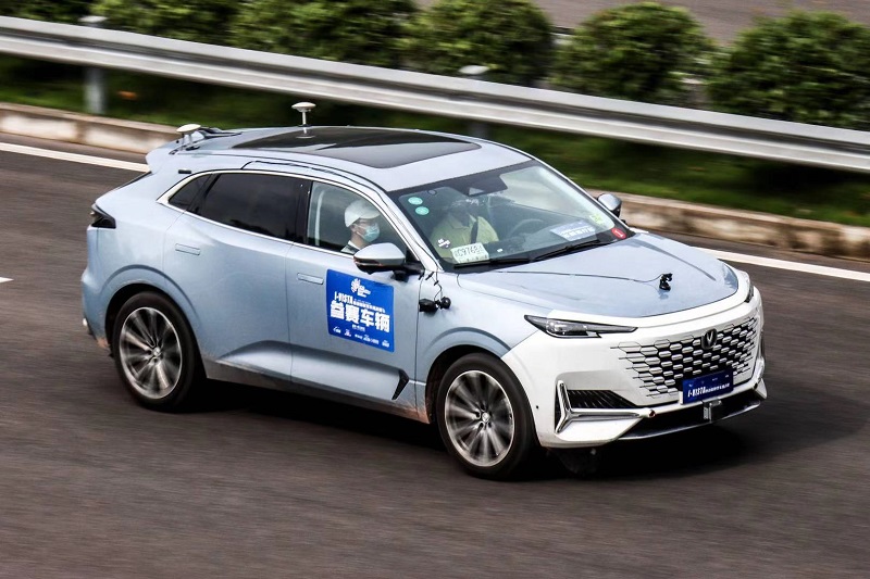 上午9點(diǎn),商業(yè)化進(jìn)程挑戰(zhàn)賽正式打響,隨著裁判員發(fā)出指令,參賽車隊(duì)魚貫駛?cè)雰山聟^(qū)六縱線。這條全長(zhǎng)約8公里的賽道,模擬重慶特有的沿江城市快速路環(huán)境,其間分布著直路、坡道、橋梁、立交等路況,同時(shí)更設(shè)置了車輛競(jìng)速、施工限速繞行、故障車輛避讓、跟車行駛、主動(dòng)變道等比賽場(chǎng)景,以挑戰(zhàn)車輛在無人駕駛狀態(tài)下的極限自動(dòng)駕駛能力。