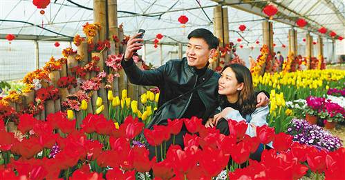 2月12日,永川區(qū)黃瓜山鄭清葡萄公園,游客與澳洲蠟花浪漫約會。連日來,該公園藍色澳洲蠟花、紅色澳洲蠟花、小公主帝王花、郁金香、虞美人等100多種花卉競相綻放,吸引了眾多游客前來踏青賞花,享受春光。通訊員 陳仕川 攝