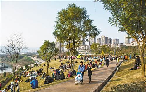 2月12日,兩江新區(qū)金海灣公園,眾多市民沐浴在春光里。 據(jù)了解,金海灣公園占地3600畝,北起禮嘉,南至大竹林,分為五個主題區(qū)。目前,一期濱江文化區(qū)已建成投用,預(yù)計2018年底,整個公園將全部建成。記者 牛強 攝
