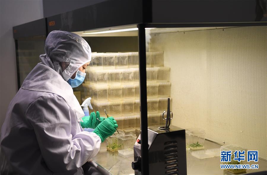 5月5日,巫溪縣馬鈴薯脫毒種薯繁育中心技術(shù)人員在接種馬鈴薯試管苗。近年來(lái),重慶市巫溪縣大力發(fā)展馬鈴薯產(chǎn)業(yè),篩選引進(jìn)新品種、推廣脫毒種薯生產(chǎn)等新技術(shù),建立起穩(wěn)定的良種擴(kuò)繁體系,馬鈴薯單產(chǎn)水平和質(zhì)量有效提升,“巫溪洋芋”的品牌影響力不斷增強(qiáng)。2017年,巫溪全縣馬鈴薯播種面積達(dá)48萬(wàn)畝,總產(chǎn)量約80萬(wàn)噸。新華社記者 王全超 攝 -