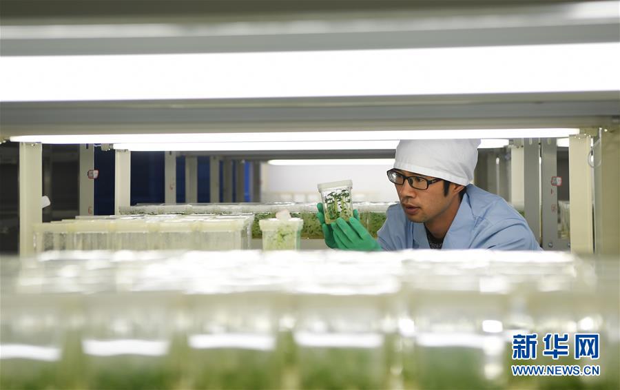 5月5日,巫溪縣馬鈴薯脫毒種薯繁育中心技術(shù)人員查看馬鈴薯試管苗的生長(zhǎng)情況。近年來(lái),重慶市巫溪縣大力發(fā)展馬鈴薯產(chǎn)業(yè),篩選引進(jìn)新品種、推廣脫毒種薯生產(chǎn)等新技術(shù),建立起穩(wěn)定的良種擴(kuò)繁體系,馬鈴薯單產(chǎn)水平和質(zhì)量有效提升,“巫溪洋芋”的品牌影響力不斷增強(qiáng)。2017年,巫溪全縣馬鈴薯播種面積達(dá)48萬(wàn)畝,總產(chǎn)量約80萬(wàn)噸。新華社記者 王全超 攝 -
