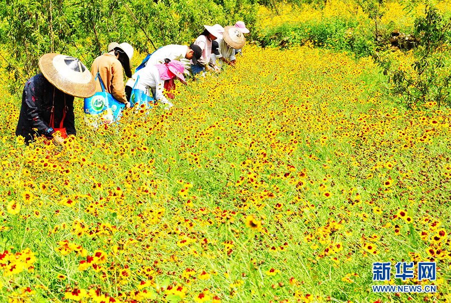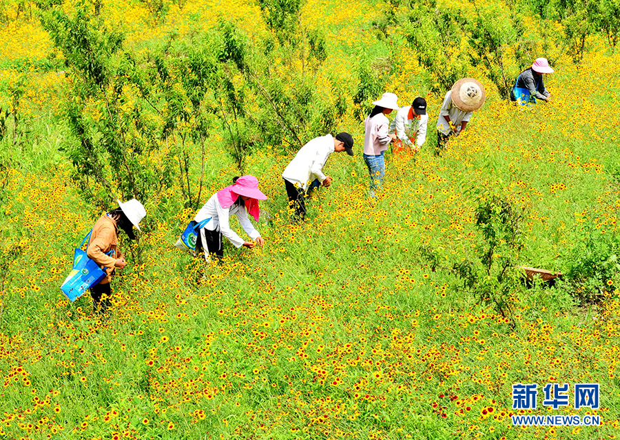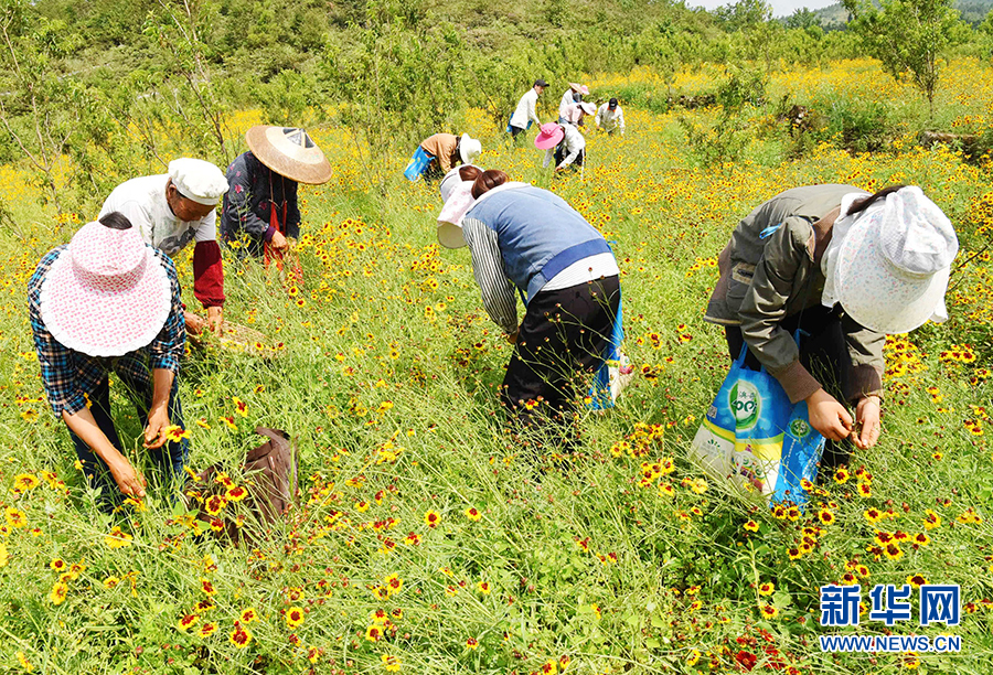 近段時(shí)間是天山雪菊花盛開(kāi)收獲的季節(jié),8月12日,在重慶市酉陽(yáng)土家族苗族自治縣桃花源街道天山堡村,村民正在忙著采菊花。據(jù)介紹,今年是該村第一次試種雪菊,明年將在全村乃至全縣進(jìn)行推廣,助推村民脫貧致富。新華網(wǎng)發(fā)(陳碧生 攝) -