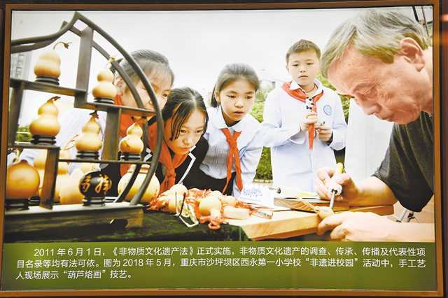 一位頭發(fā)花白的長者低著頭創(chuàng)作“葫蘆烙畫”,吸引了多名學生圍觀……在國家博物館“偉大的變革——慶祝改革開放40周年大型展覽”第四展區(qū)第三單元,一張“非遺進校園”的照片引人注目。據了解,圖中的長者正是重慶市級非遺項目“葫蘆烙畫”的代表性傳承人張居常。