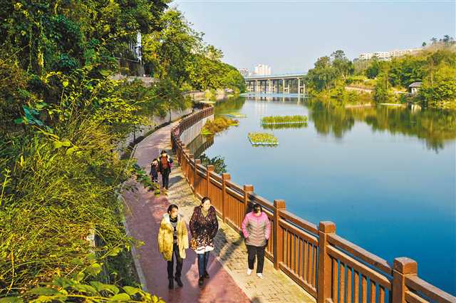 巴南區(qū)新華村社區(qū)公園,市民行走在步道上。(本報(bào)資料圖片)首席記者 謝智強(qiáng) 攝