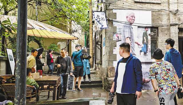 2018年10月2日,渝中區(qū)山城步道,2018重慶國(guó)際影像文化節(jié)系列活動(dòng)之一的“山城步道戶外影像展”吸引了不少游客的目光。(本報(bào)資料圖片)記者 崔力 攝