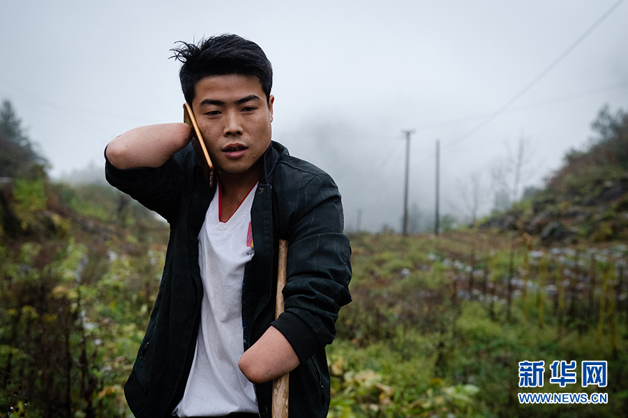 在脫貧攻堅中,總有榜樣讓人致敬。意外奪走了宿祖兵的雙手,卻沒能奪走他對生活的斗志。靠著雙臂,宿祖兵和家人種植了100畝烤煙,養(yǎng)起了30多頭肉牛,成為彭水縣三義鄉(xiāng)的脫貧“牛人”。新華網(wǎng) 李相博 攝