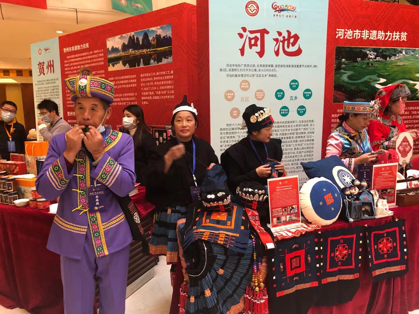 12月12日,由廣西壯族自治區(qū)文化和旅游廳、廣西壯族自治區(qū)人民政府駐北京辦事處聯(lián)合主辦的“壯美廣西·多彩非遺”2020廣西非遺助力脫貧攻堅和鄉(xiāng)村振興(北京)展示活動內(nèi)容包括非遺藝術(shù)展演,非遺手工技藝類商品、貧困縣區(qū)名優(yōu)特產(chǎn)展陳,廣西國家級、自治區(qū)級非遺代表性名錄項目宣傳展示,以及網(wǎng)紅直播帶貨銷售等。