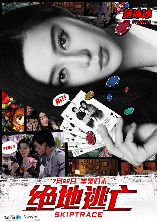 今日同時(shí)曝光的海報(bào)中,成龍卻神情凝重,被一支槍口瞄準(zhǔn)頭顱,橫穿的子彈激起蘑菇云,夸張的手法暗示著逃亡路上不斷的風(fēng)波。此版海報(bào)一改此前表情包萌趣路線,范冰冰、約翰尼·納什維爾均以黑白頭像嚴(yán)肅登場,與飽滿鮮艷的背景色彩和歡喜的漫畫風(fēng)格之間形成強(qiáng)烈反差。這種黑白與鮮艷、嚴(yán)肅與熱鬧的對(duì)比,也暗示著影片中各種矛盾和驚喜反轉(zhuǎn)。