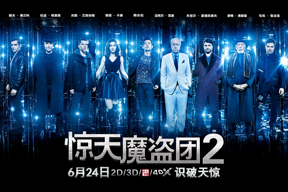 由獅門影業(yè)重金打造,獅鼠影業(yè)協(xié)助推廣,美籍華裔導(dǎo)演朱浩偉執(zhí)導(dǎo),杰西·艾森伯格、伍迪·哈里森、戴夫·弗蘭科、麗茲·卡潘、“綠巨人”馬克·魯法洛、邁克爾·凱恩、摩根·弗里曼聯(lián)合周杰倫、“哈利·波特”丹尼爾·雷德克里夫主演的高智商犯罪動(dòng)作巨制《驚天魔盜團(tuán)2》正在以2D、3D、4DX以及中國巨幕格式在內(nèi)地?zé)嵊场?/p>