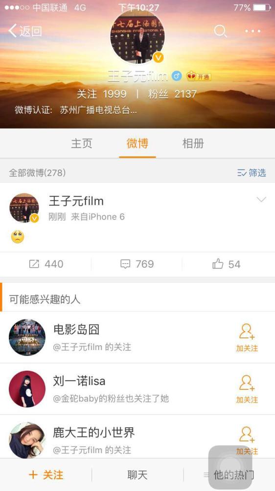 王子元微博截圖
