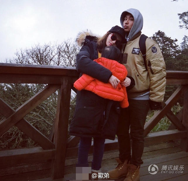 1月24日,歐弟在微博曬出一家三口一起外出游玩的照片。