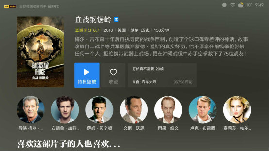 拿下最佳剪輯、最佳音響效果的《血戰(zhàn)鋼鋸嶺》值得二刷,這部戰(zhàn)爭大片在各大影評網(wǎng)站都獲得8.5以上的高分,被視為《拯救大兵瑞恩》后的又一部經(jīng)典之作