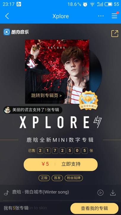 回看鹿晗MINI專輯《Xplore》的輝煌戰(zhàn)績,酷狗音樂開售8天,銷量突破100萬張,開售20天,銷量飆升至200萬張!最新MINI專輯《Venture》銷量也在火爆增長中,未來將再一次顛覆所有人想象!厲害了破紀(jì)鹿!
