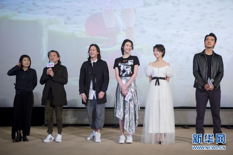 4月8日,影片監(jiān)制許月珍、陳可辛,導(dǎo)演許宏宇,主演奚夢瑤、周冬雨、金城武(從左至右)出席電影《喜歡你》首映活動。當(dāng)日,電影《喜歡你》在北京舉行首映活動,影片監(jiān)制陳可辛、許月珍,導(dǎo)演許宏宇,主演金城武、周冬雨等出席活動。 新華社發(fā)(趙冰 攝) -