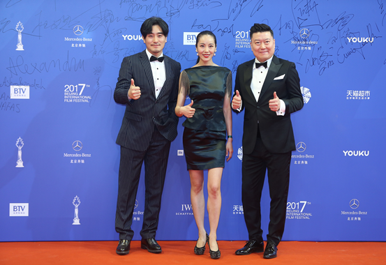 在紅毯上,樊、景、閻雖然沒有極具設計感的服飾,但是看起來也是不落俗套,很有看點。主演景珂以一身黑色職業(yè)包臀裝現身,顯得干練大方,耳帶兩個珠型耳墜,看起來優(yōu)雅有范,具有美感,左邊的導演樊昊侖身穿韓版西服看起來正式又不失潮流韓范、非常吸引眼球、右邊的制片人閻康也是韓范兒大叔裝亮相,甚是搶眼。很多人看到了樊昊侖的白發(fā),猜測不斷,各種討論也是不斷在微博上出現?吹竭@里,我們都知道這部電影的影響力可見一斑,希望以后的中國電影能出現越來越多的良心巨制。