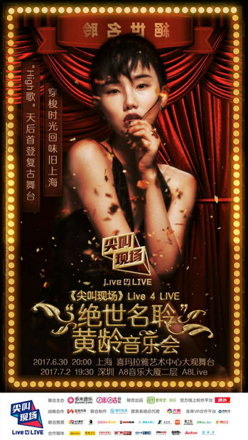據(jù)悉,本次“絕世名聆” 黃齡音樂會將安排上海站、深圳站兩場巡演。上海站于2017年6月30日20:00在上海喜馬拉雅藝術(shù)中心大觀舞臺演出。深圳站于2017年7月2日19:30在深圳A8live開演,進(jìn)入大麥官網(wǎng)搜索“黃齡”可直接購票,更多精彩詳情,可到“尖叫現(xiàn)場Live4LIVE”官方微信查看。