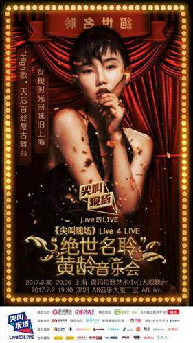 據(jù)悉,本次“絕世名聆” 黃齡音樂會(huì)將安排上海站、深圳站兩場(chǎng)巡演。上海站于2017年6月30日20:00在上海喜馬拉雅藝術(shù)中心大觀舞臺(tái)演出。深圳站于2017年7月2日19:30在深圳A8live開演,進(jìn)入大麥官網(wǎng)搜索“黃齡”可直接購(gòu)票,更多精彩詳情,可到“尖叫現(xiàn)場(chǎng)Live4LIVE”官方微信查看。