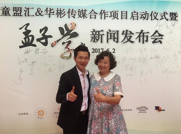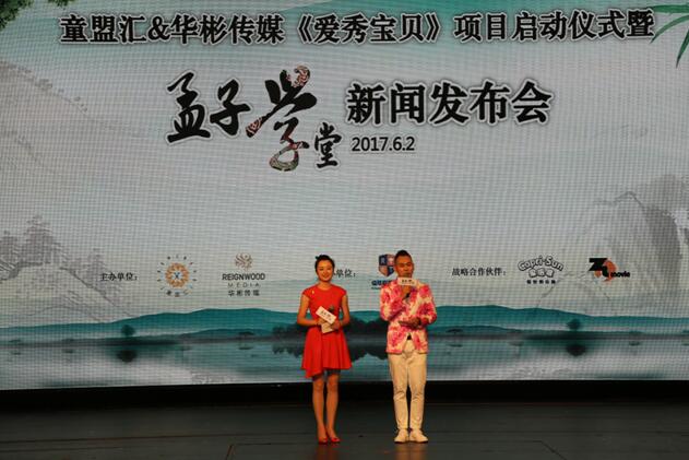 北京時間2017年6月2日,大型兒童劇《孟子學(xué)堂》新聞發(fā)布會在北京華彬歌劇院舉行?傊破{歌、導(dǎo)演段昊人、編劇李建宏及《家有兒女》原創(chuàng)班底親臨現(xiàn)場,分享在該劇創(chuàng)作中的有趣故事。由童盟匯與華彬傳媒聯(lián)合打造的“愛秀寶貝”兒童藝能培養(yǎng)項目同期啟動。
