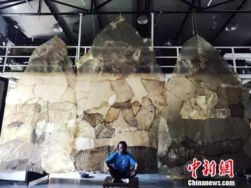 《水漫金山》中大山背景裝置使用真皮拼接堆砌。
