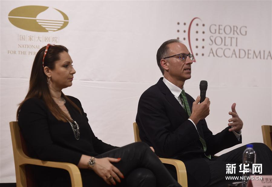 8月28日,意大利喬治·索爾蒂學(xué)院藝術(shù)總監(jiān)、聯(lián)合創(chuàng)始人喬納森·帕博(右)在發(fā)布會(huì)上致辭。當(dāng)日,由國家大劇院與意大利喬治·索爾蒂學(xué)院聯(lián)合主辦的“索爾蒂中國大師班”再度啟幕。本屆大師班由藝術(shù)指導(dǎo)喬納森·帕博、聲樂指導(dǎo)伊莎貝拉·拉德克利菲、國際著名女高音歌唱家芭芭拉·芙麗托莉三位享譽(yù)國際的明星導(dǎo)師聯(lián)合在國家大劇院授課,課程內(nèi)容包括戲劇、聲音風(fēng)格、發(fā)聲方法以及意大利語等。學(xué)員將在8月28日至8月31日接受導(dǎo)師們的指導(dǎo)。此外,8月31日在國家大劇院音樂廳將舉辦一場公開大師課。據(jù)悉,本屆“索爾蒂中國大師班”課程結(jié)束后,將選出1名優(yōu)秀學(xué)員入讀2018意大利喬治·索爾蒂學(xué)院的夏季課程,參與為期3周的專業(yè)培訓(xùn)學(xué)習(xí)。新華社記者 羅曉光 攝