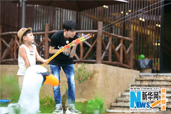 除了為客人們煎蛋,王源還貼心照顧小朋友。晚飯后,主人們與素人旅客一起齊聚游泳池游泳,其中一家四口中的小男孩也在水中嬉戲,他看見王源更是抑制不住喜歡之情,直呼:“王源哥哥,你帶著我游!蓖踉匆残廊粦(yīng)允,拉著小朋友的游泳圈一直往前游,讓這位小朋友分外開心。
