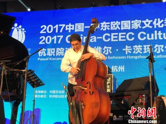 中新網(wǎng)杭州10月18日電(牛妍 童笑雨)藍(lán)色的舞臺,炫白的燈光,鋼琴和貝斯的絕妙搭配,為在場的觀眾帶來了一次絕妙的視聽盛宴。10月18日晚,2017中國--中東歐國家文化季之杭職院波蘭帕維爾·卡茨瑪爾切克三重奏項目在浙江杭州職業(yè)技術(shù)學(xué)院(下稱“杭職院”)奏響。此次演出旨在加強中國與中東歐16國間的文化交流與合作,鞏固和夯實中國與中東歐國家之間的傳統(tǒng)友誼。