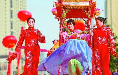 近日,民間藝人在進(jìn)行旱船表演。