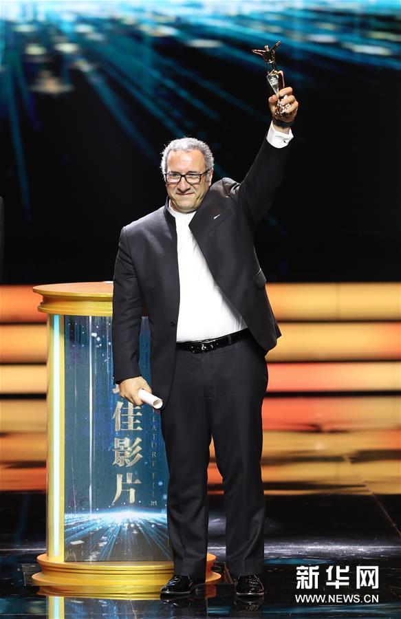 6月23日,伊朗影片《夢(mèng)之城堡》導(dǎo)演雷薩·米爾卡里米在臺(tái)上領(lǐng)獎(jiǎng)。 當(dāng)日,第22屆上海國際電影節(jié)揭曉金爵獎(jiǎng)。伊朗影片《夢(mèng)之城堡》攬得最佳影片、最佳導(dǎo)演和最佳男演員三項(xiàng)大獎(jiǎng)。評(píng)委會(huì)大獎(jiǎng)與最佳女主角獎(jiǎng)則歸屬格魯吉亞、俄羅斯、瑞典合拍影片《呼吸之間》。
