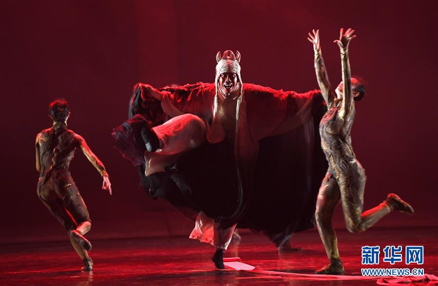 7月12日,演員在表演舞劇《儺情》。 7月12日,由北京舞蹈學院青年舞團、江西省南豐縣石郵村儺班聯(lián)合主演的非物質(zhì)文化遺產(chǎn)研創(chuàng)舞劇《儺情》在位于南昌市的江西藝術中心上演。全劇圍繞中國古老的“儺”文化,以舞蹈獨有的方式生動詮釋了中國傳統(tǒng)文化精神的源遠流長。新華社記者 萬象 攝