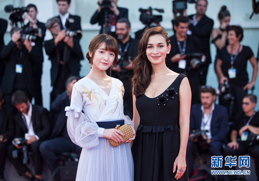 8月31日,在意大利威尼斯,“聚焦中國”活動嘉賓演員徐嬌(左)和盧靖姍亮相第74屆威尼斯電影節(jié)紅毯。 新華社記者金宇攝 -
