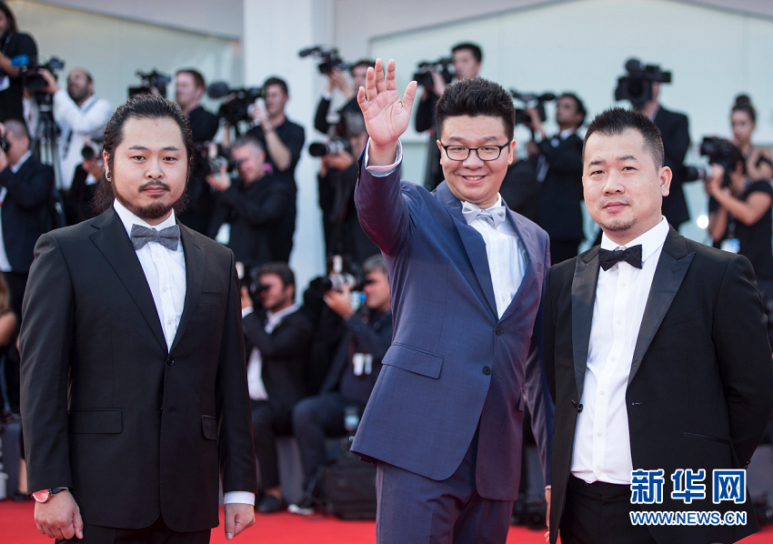 8月31日,在意大利威尼斯,“聚焦中國”活動嘉賓中影簽約導(dǎo)演衛(wèi)鐵(右)、張楠(中)和李譞亮相第74屆威尼斯電影節(jié)紅毯。 新華社記者金宇攝 -