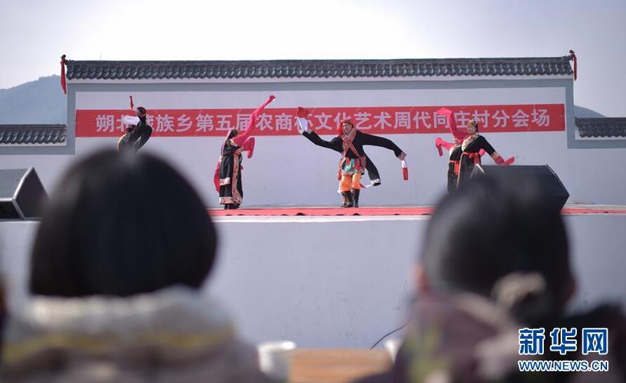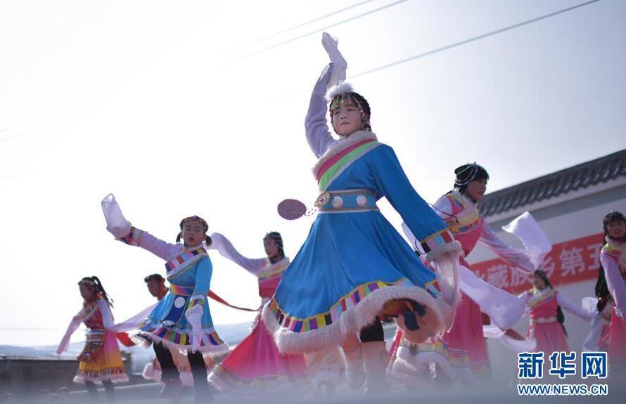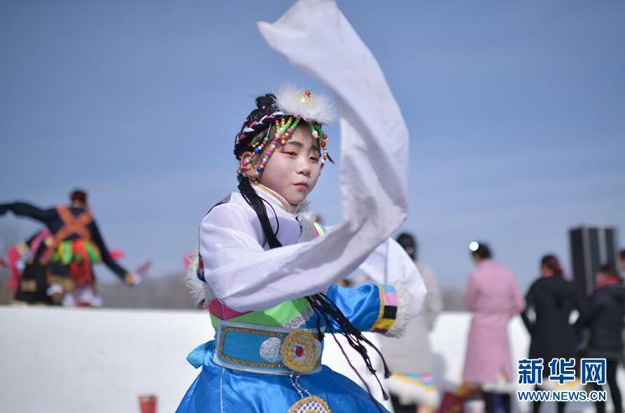2月7日,演員在表演藏族舞蹈。當(dāng)日,在青海省大通回族土族自治縣朔北藏族鄉(xiāng)代同莊村的小廣場(chǎng)上,由當(dāng)?shù)卮迕褡园l(fā)組織的民間藝術(shù)團(tuán)進(jìn)行文藝演出,喜迎新春佳節(jié)。 新華社記者 吳剛 攝 -