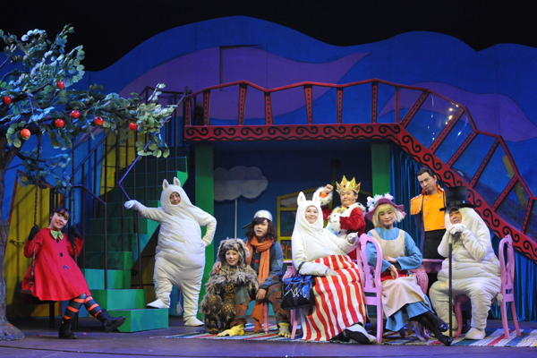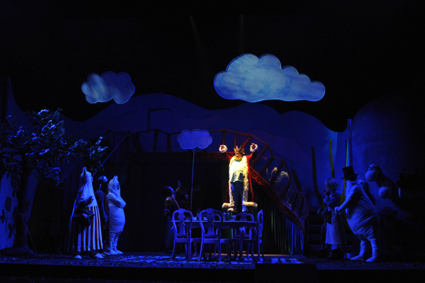 《國(guó)王在姆咪谷》的舞臺(tái)設(shè)計(jì)十分精巧,一面是姆咪家的場(chǎng)景,一面是國(guó)王王宮的場(chǎng)景,演出時(shí)舞臺(tái)180度旋轉(zhuǎn),即可在兩個(gè)場(chǎng)景中切換。來(lái)自芬蘭的舞美服裝設(shè)計(jì)卡爾梅拉·瓦格介紹說(shuō),該劇講述的是極其單純的幸福,故事沒(méi)有大的起伏,可能大人看起來(lái)覺(jué)得缺乏戲劇沖突,但對(duì)于孩子來(lái)說(shuō),這和他們自己的生活狀態(tài)很像。在孩子的世界中,可能天大的煩惱就是現(xiàn)在想吃糖,可是媽媽說(shuō)明天才能吃。所以,該劇的舞美也是極其簡(jiǎn)潔和生活化的,沒(méi)有太多復(fù)雜花哨的裝飾。但在孩子眼中,姆咪一家竟然住在一個(gè)種著蘋果樹,可以蕩秋千的房子里,簡(jiǎn)直太酷了!這就是我理想中的家!這一版的設(shè)計(jì)在原來(lái)芬蘭版本上做了改動(dòng),更多還原了繪本中的樣子,更加恬靜、優(yōu)美,色彩更加鮮艷、明亮。
