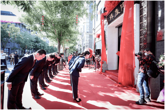 匾額是中國獨有的文化符號,對老字號更是意味深長。凈匾,也是敬匾,不僅是對先祖的深切緬懷,更讓每個人懷有敬畏之心,承擔起傳承、弘揚自身文化與理念的重任。隨著財神京腔念白的悠悠開場,活動大幕緩緩拉開。嫘祖制衣繡華裳,服章之美謂之為“華”;倉頡造字而知禮,禮儀之大謂之為“夏”。隆慶祥以傳統(tǒng)的凈匾儀式向世人展現(xiàn)華夏風骨,古韻新篇。