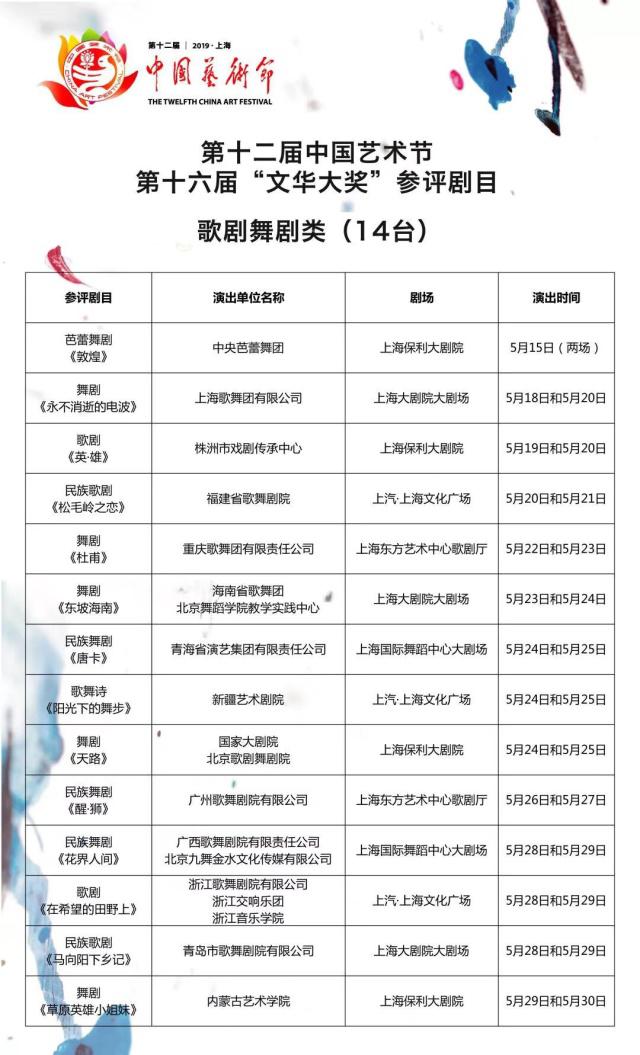 近日,參加第十二屆中國(guó)藝術(shù)節(jié)的51臺(tái)劇目演出日程正式公布。其中,經(jīng)過(guò)全國(guó)各省(區(qū)、市)、新疆生產(chǎn)建設(shè)兵團(tuán)、中央軍委政治工作部推薦的38臺(tái)劇目入圍了第十六屆“文華大獎(jiǎng)”的評(píng)選。值得一提的是,經(jīng)過(guò)業(yè)界專家、協(xié)會(huì)以及港澳臺(tái)地區(qū)推薦的13臺(tái)劇目也將在本屆藝術(shù)節(jié)集中亮相參演,為廣大觀眾帶來(lái)精彩紛呈的演出。
