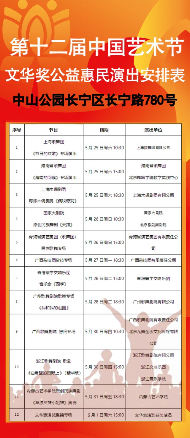 第十二屆中國(guó)藝術(shù)節(jié)即將在滬拉開(kāi)帷幕,為更好地體現(xiàn)“藝術(shù)的盛會(huì),人民的節(jié)日”的辦節(jié)宗旨,組委會(huì)積極推動(dòng)十二藝節(jié)優(yōu)秀作品進(jìn)入社區(qū)、校園、商場(chǎng)、公園、部隊(duì)、企業(yè)開(kāi)展惠民演出和活動(dòng),讓藝術(shù)滲透到城市的各個(gè)角落。