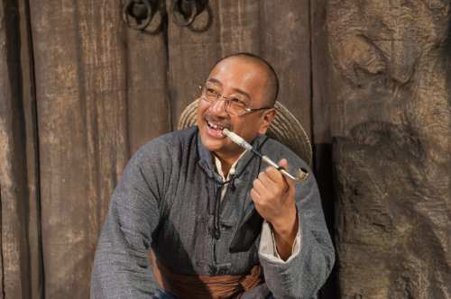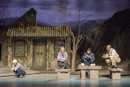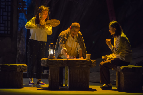 在話劇《柳青》中,《創(chuàng)業(yè)史》里的人物和故事與皇甫村里的人物和故事、作家柳青與舞臺形象柳青奇妙地交融在一起,敘述方式的創(chuàng)新形成了強大的戲劇張力。通過從藝術(shù)形象回溯生活原型這樣高明的敘述手段,話劇《柳青》讓小說中的人物走到柳青身邊,讓話劇和小說這兩個文本取得精神上的內(nèi)在聯(lián)系。這樣的藝術(shù)匠心,有時甚至以生活流的狀態(tài)呈現(xiàn)出來,令整部話劇既有生活的質(zhì)感,又充滿了藝術(shù)加工的“肌理感”。