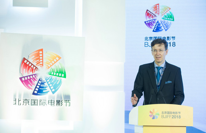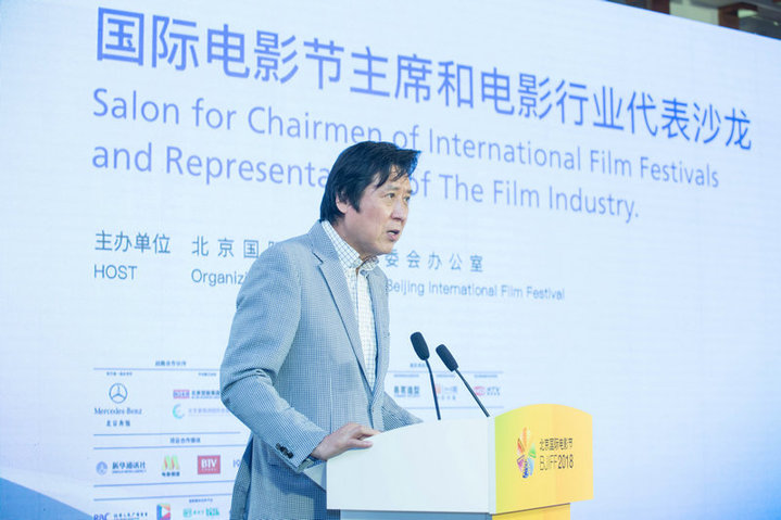 胡東同志首先對(duì)參加北京國(guó)際電影節(jié)的各國(guó)電影行業(yè)朋友們表達(dá)了熱烈的歡迎,并表示,近年來中國(guó)電影產(chǎn)業(yè)持續(xù)、健康、快速發(fā)展,取得了令人矚目的成就。2017年中國(guó)電影市場(chǎng)總票房達(dá)到了559.11億元人民幣,比上年增長(zhǎng)13.45%,已經(jīng)成為世界第二大電影市場(chǎng),其中國(guó)產(chǎn)電影票房為301.04億元,占票房總額的53.84%;全國(guó)新增銀幕9597塊,銀幕總數(shù)已達(dá)到50776塊,穩(wěn)居世界第一;城市院線觀影人次為16.2億,比上年增長(zhǎng)18.08%。中國(guó)電影繼續(xù)保持了積極健康向上的良好發(fā)展態(tài)勢(shì)。北京國(guó)際電影節(jié)的迅速發(fā)展,離不開海內(nèi)外電影機(jī)構(gòu)和電影人的熱情支持下,北京國(guó)際電影節(jié)組委會(huì)將以新標(biāo)準(zhǔn)、新高度、新作為,把北京國(guó)際電影節(jié)打造成更具國(guó)際視野、更具中國(guó)風(fēng)范、更具北京特色的文化盛宴和北京城市文化品牌“金名片”。最后,胡東同志向全世界電影界同行發(fā)出邀請(qǐng),希望與世界各地所有支持熱愛電影藝術(shù)的組織和機(jī)構(gòu),建立長(zhǎng)久廣泛的合作,共享中國(guó)電影事業(yè)發(fā)展所帶來的機(jī)遇與成功。