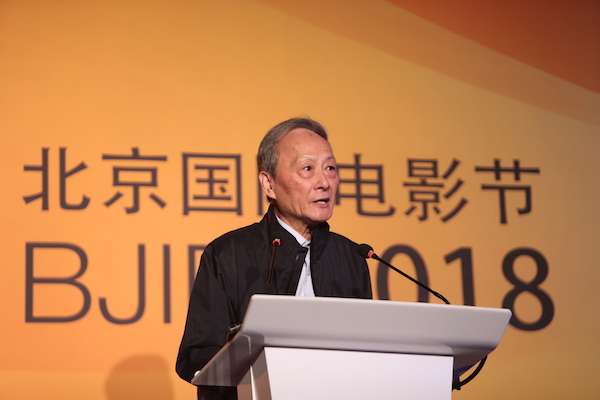圖為配音藝術(shù)家童自榮在第八屆北京國際電影節(jié)發(fā)表演講 央廣網(wǎng)記者韓靖攝