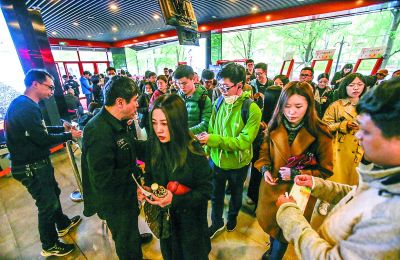 中國電影資料館藝術影院,影迷持票入場觀看北京國際電影節(jié)展映影片。 本報記者 武亦彬攝