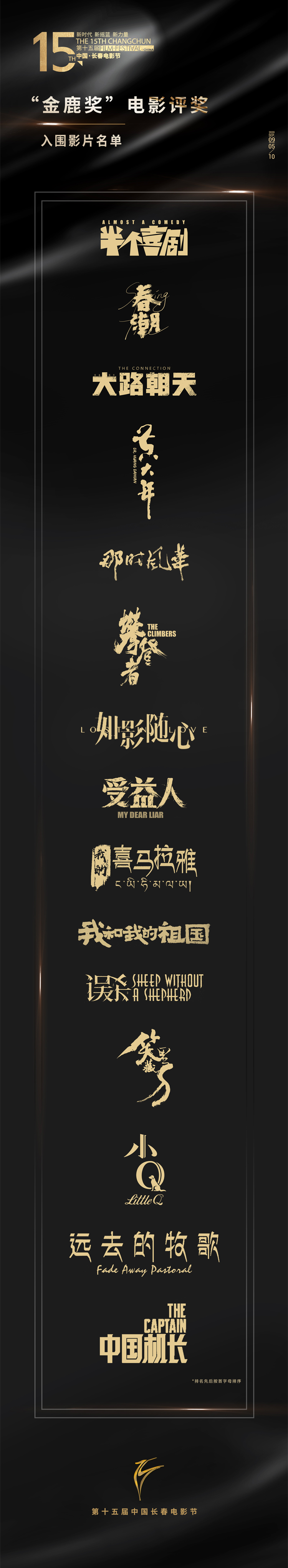 此次“金鹿獎”入圍影片名單,既有去年一同火爆國慶檔的三部主旋律大片《我和我的祖國》《中國機長》和《攀登者》,也有類型明確、口碑不俗的《半個喜劇》和《誤殺》;既有歌頌時代楷模的《黃大年》和《那時風華》,也有關注社會發(fā)展與建設的《大路朝天》和《我的喜馬拉雅》;而《如影隨心》《春潮》《受益人》《笑里藏刀》《小Q》《遠去的牧歌》等風格迥異、展現(xiàn)當代社會不同面向的作品,也將一同參與“金鹿獎”的角逐。