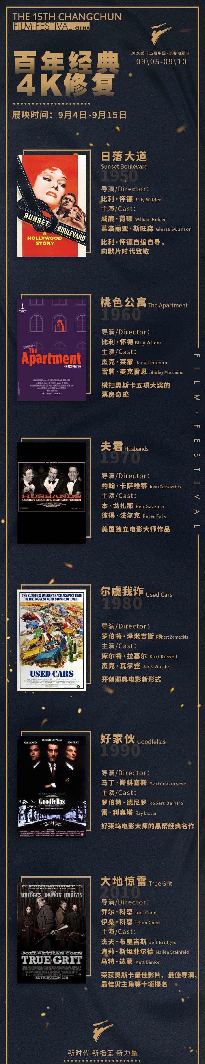 每年全世界各大電影節(jié)的經(jīng)典電影修復(fù)單元都會(huì)成為“重頭戲”,今年長春電影節(jié)也將推出萬眾期待的“百年經(jīng)典 4K修復(fù)”單元。本次4K修復(fù)展映單元將回顧歷史,不忘初心,以電影的名義,以最新的修復(fù)技術(shù),向經(jīng)典老片和杰出影人致敬。其中,既包括比利·懷德的《桃色公寓》,也有馬丁·斯科塞斯的《好家伙》等在內(nèi)的眾多經(jīng)典作品。