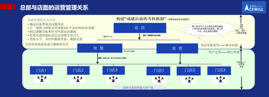 另外,關(guān)于總部和店面的運(yùn)營(yíng)管理關(guān)系,總部管得太死,店面不活,總部放得太寬,品牌品質(zhì)沒有了。這是很多品牌今天面臨的挑戰(zhàn)。但是你看快消領(lǐng)域或者其他領(lǐng)域的連鎖,就兩個(gè)關(guān)鍵,第一是總部管控指標(biāo),比如損耗指標(biāo)、客戶滿意度指標(biāo),一線店面決定影響客流和營(yíng)業(yè)額以及店面毛利的目標(biāo)。