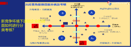 還有對(duì)于店面的分類及考核。過去每個(gè)店考核營(yíng)業(yè)額和利潤(rùn),現(xiàn)在因?yàn)榈昝娼?jīng)營(yíng)的復(fù)雜性,考核變得無效了。有的店會(huì)不服氣,說我的店選址不好,他的店好。所以有些品牌把店分成A類店B類店。如果管理得好,就會(huì)進(jìn)化,如果管理得不好,就會(huì)退化。這里面的細(xì)節(jié)流程,后面歡迎大家關(guān)注“奧琦瑋ACEWILL”,獲取更詳細(xì)的信息。